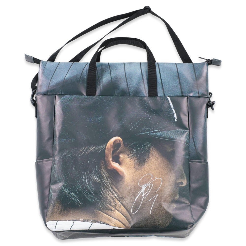 球場正面入り口に2025年掲載したターポリン幕をリメイクして作られた、1点ものの特別なトートバッグです。トートバッグ正面に選手の写真を大胆に配置し、選手の存在をリアルに感じられるデザインに仕上げました。さらに、選手の直筆サイン入り。唯一無二の貴重な商品をあなたへお届けします!