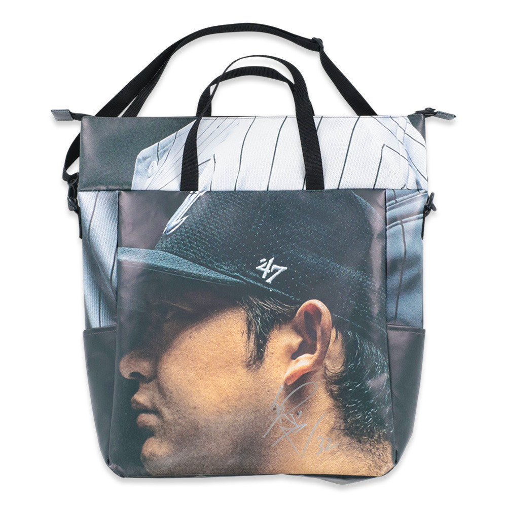 球場正面入り口に2025年掲載したターポリン幕をリメイクして作られた、1点ものの特別なトートバッグです。トートバッグ正面に選手の写真を大胆に配置し、選手の存在をリアルに感じられるデザインに仕上げました。さらに、選手の直筆サイン入り。唯一無二の貴重な商品をあなたへお届けします!