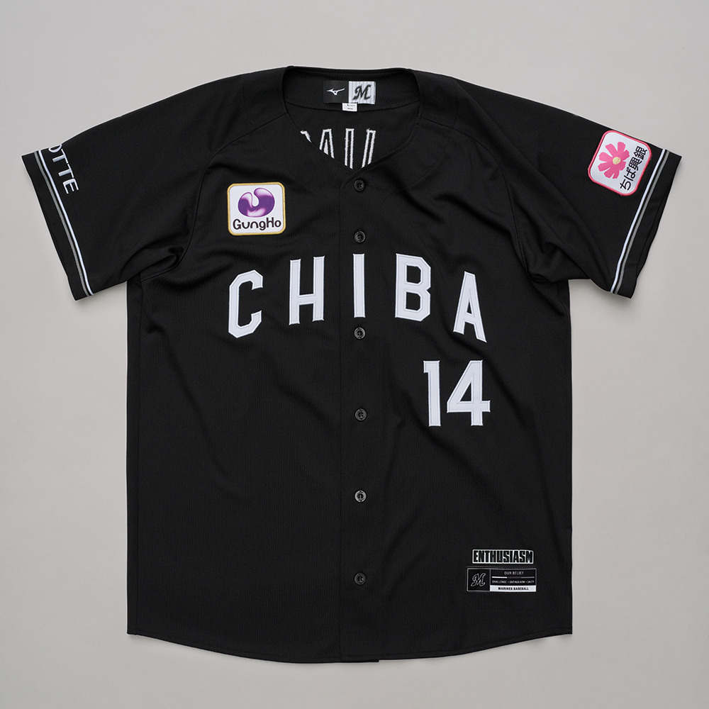 CHIBAの胸デザインが新しい漆黒のVISITORユニホームにはENTHUSIASM(熱狂)が、左裾にパッチとしてデザインされています。