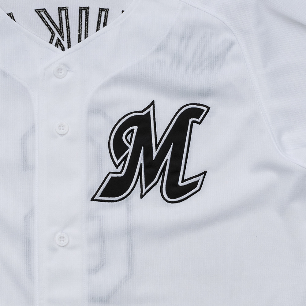 ホワイトを基調としたデザインで、袖には球団理念にある「勝利への挑戦・勝利の熱狂・勝利の結束」を表現したブラック、ホワイト、グレーの3本線「BELIEF LINE」をこれまでよりも細く配置し、現代的な印象に仕立てました。