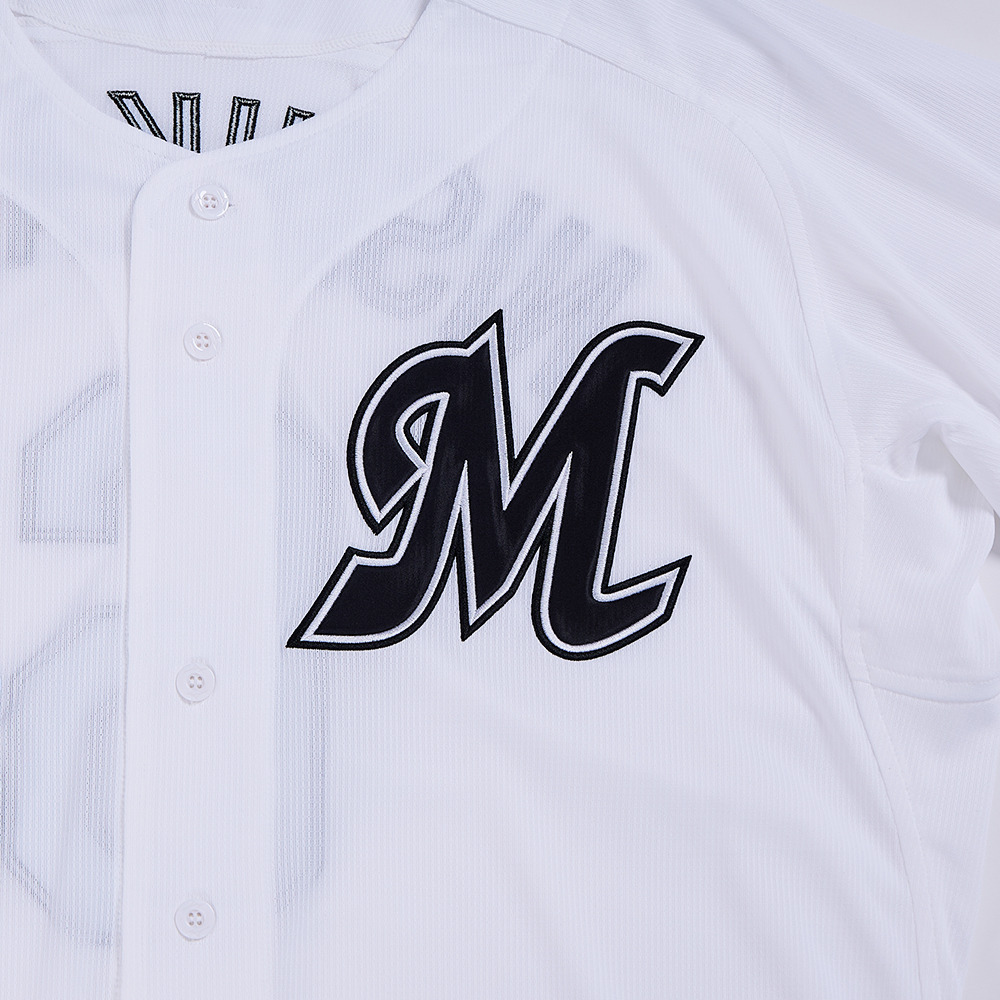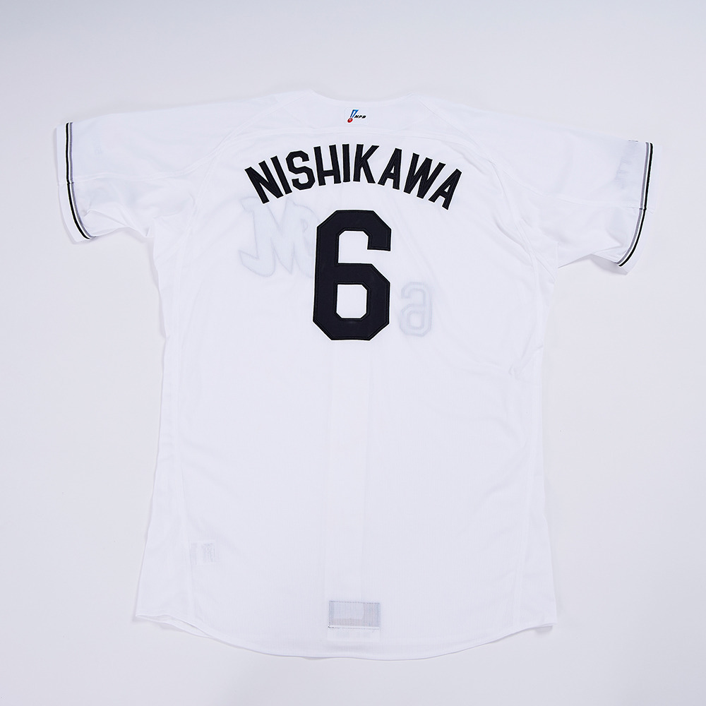 ホワイトを基調としたデザインで、袖には球団理念にある「勝利への挑戦・勝利の熱狂・勝利の結束」を表現したブラック、ホワイト、グレーの3本線「BELIEF LINE」をこれまでよりも細く配置し、現代的な印象に仕立てました。