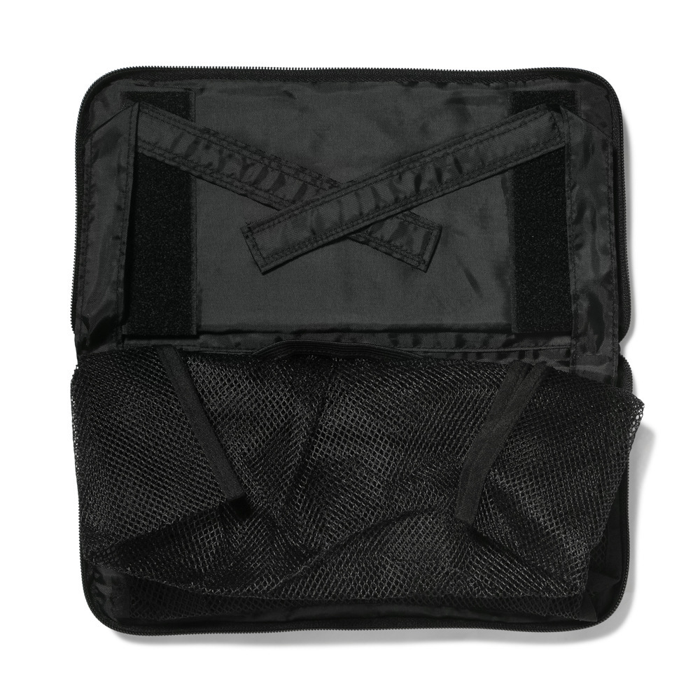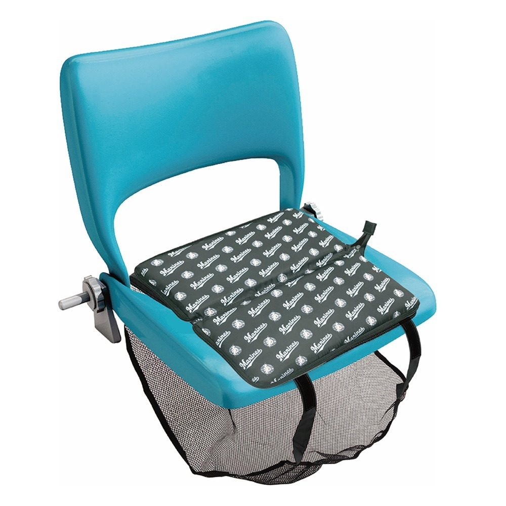 試合観戦時、荷物の置き場に困るシーンに最適な、収納ネット付きシートクッションです。