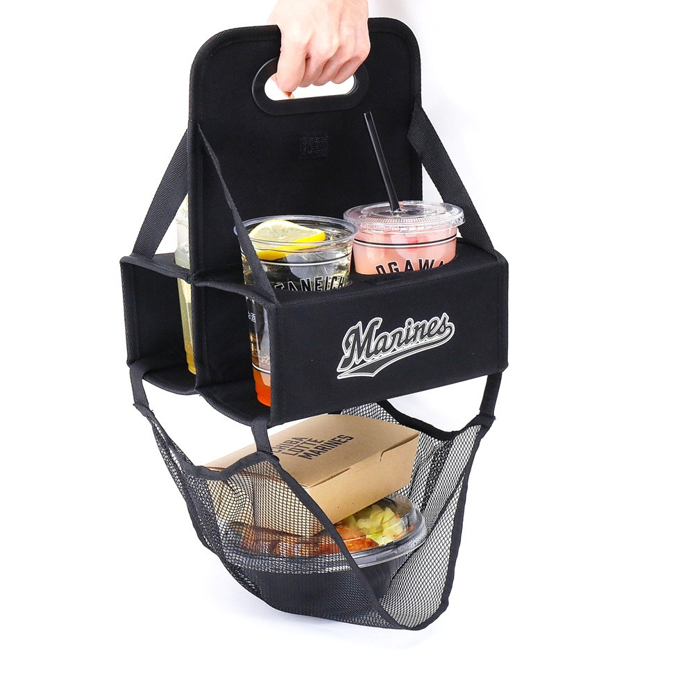 ドリンク&フードを一気に持ち運べる、ネット付折りたたみカップホルダー