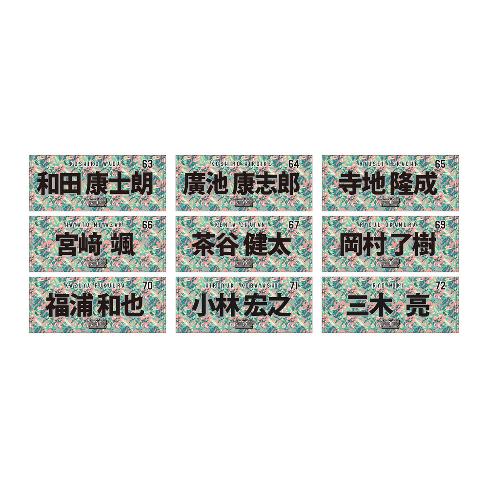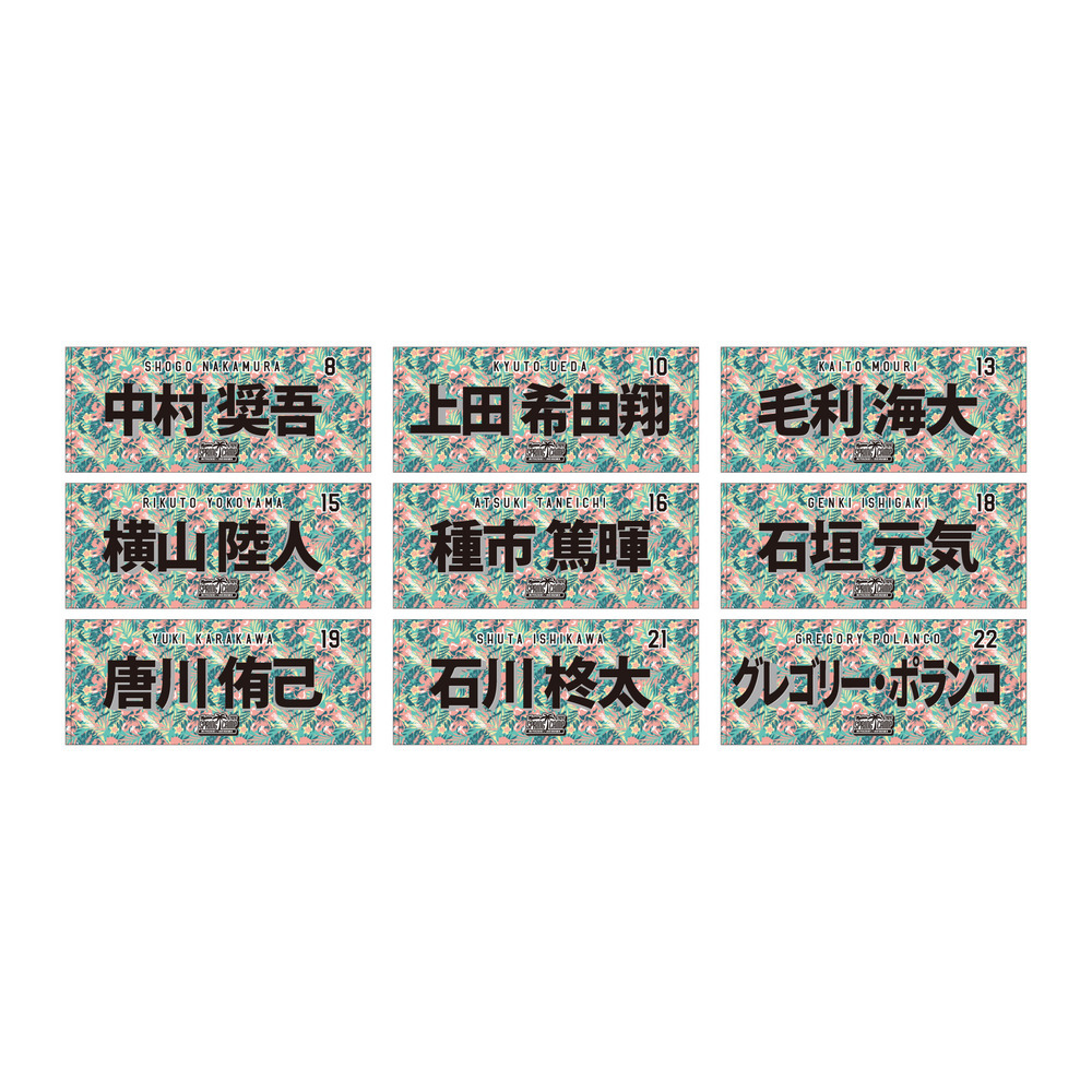 販売予定選手:#0髙部、#1藤原、#6西川、#13毛利、#18石垣、#32佐藤、#40奥村、#61山本大、#64廣池、#65寺地、#86サブロー監督、#122森
