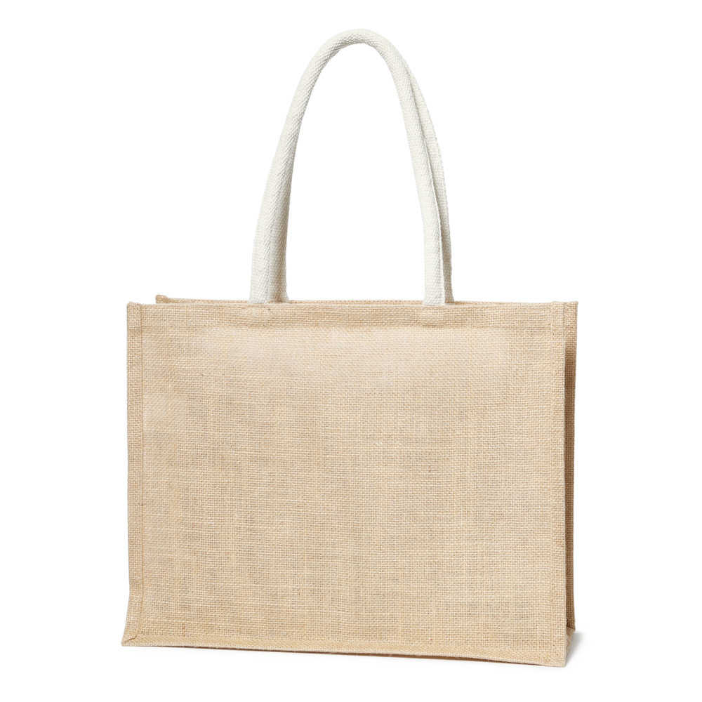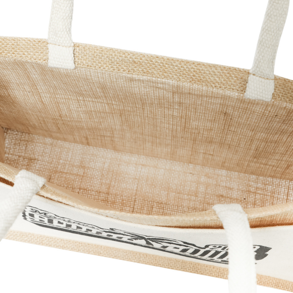 ナチュラルな風合いのジュート(麻)素材に、キャンプロゴが映えるトートバッグです。