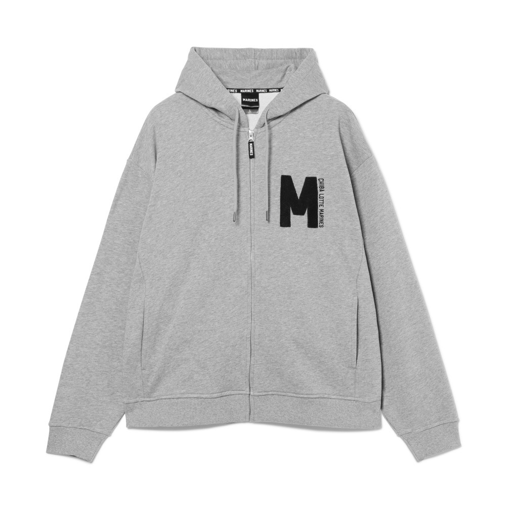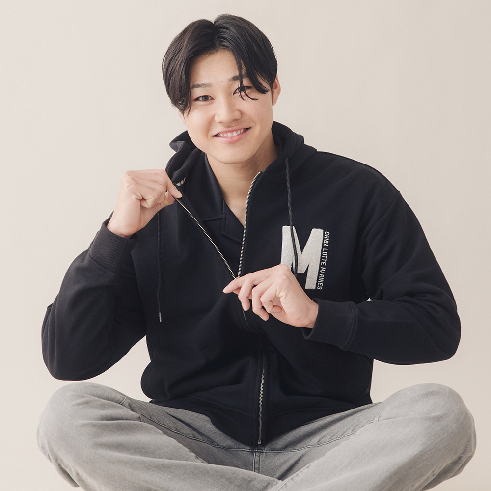 胸元にマリーンズのイニシャル「M」を、モコモコとした質感が特徴の「サガラ刺繍」で表現しました。