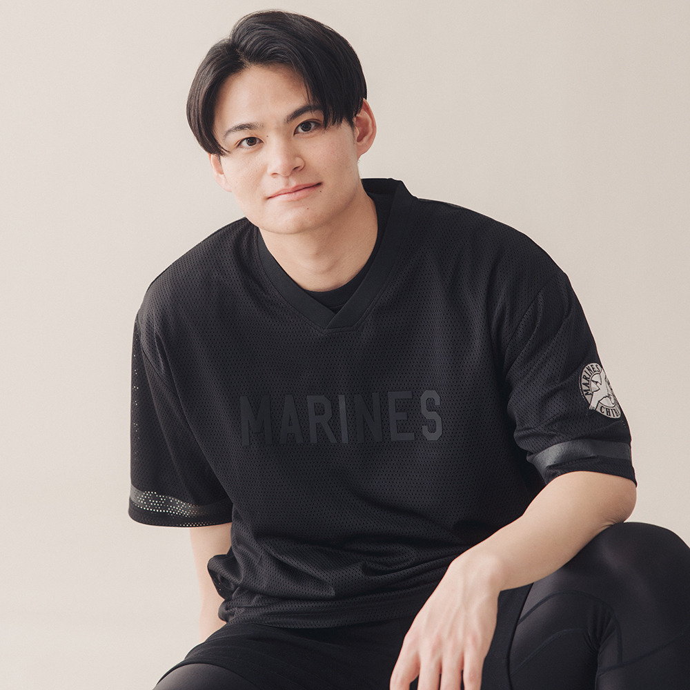 フロントの「MARINES」ロゴはマットな立体プリントでさりげなくも印象的な表情に仕上げました。