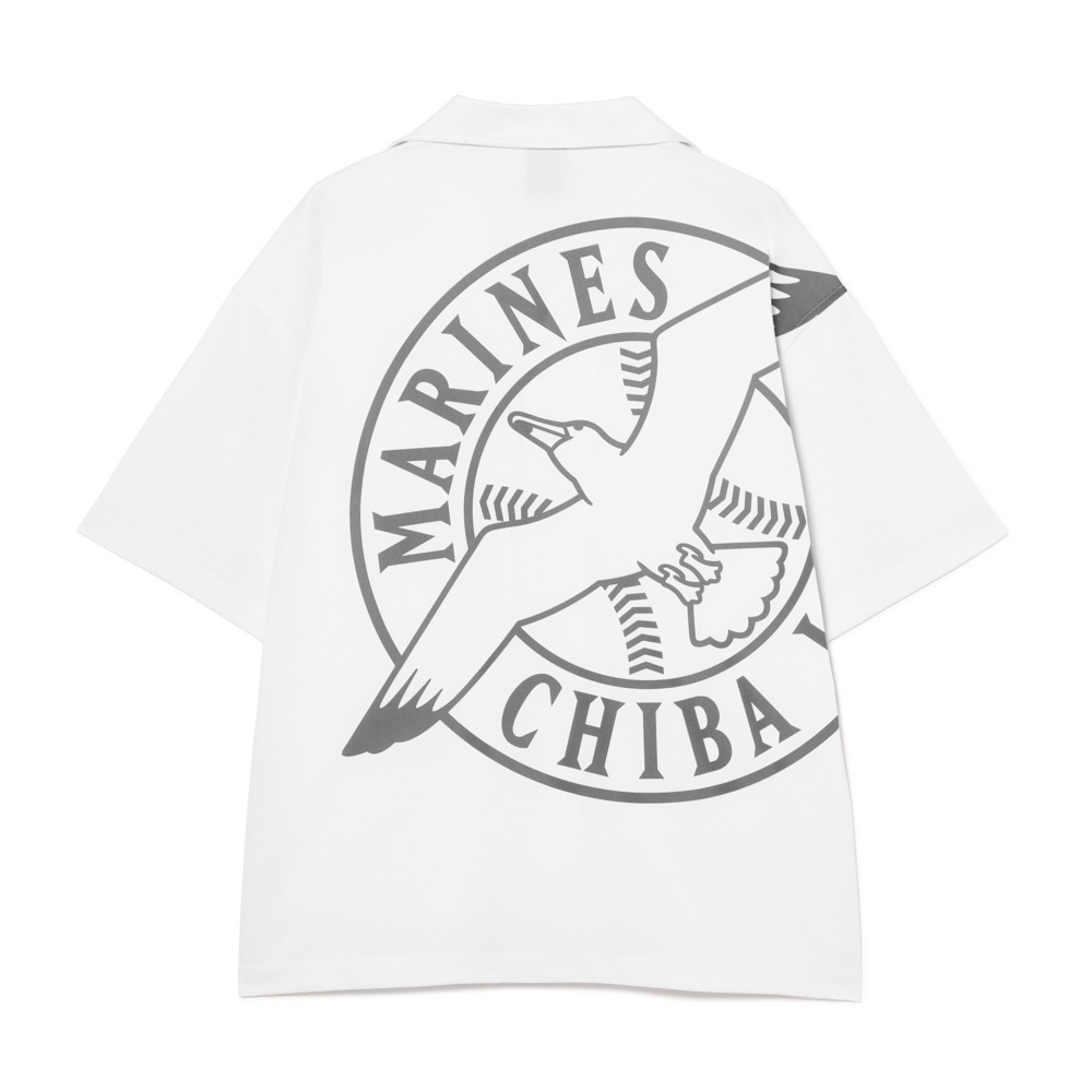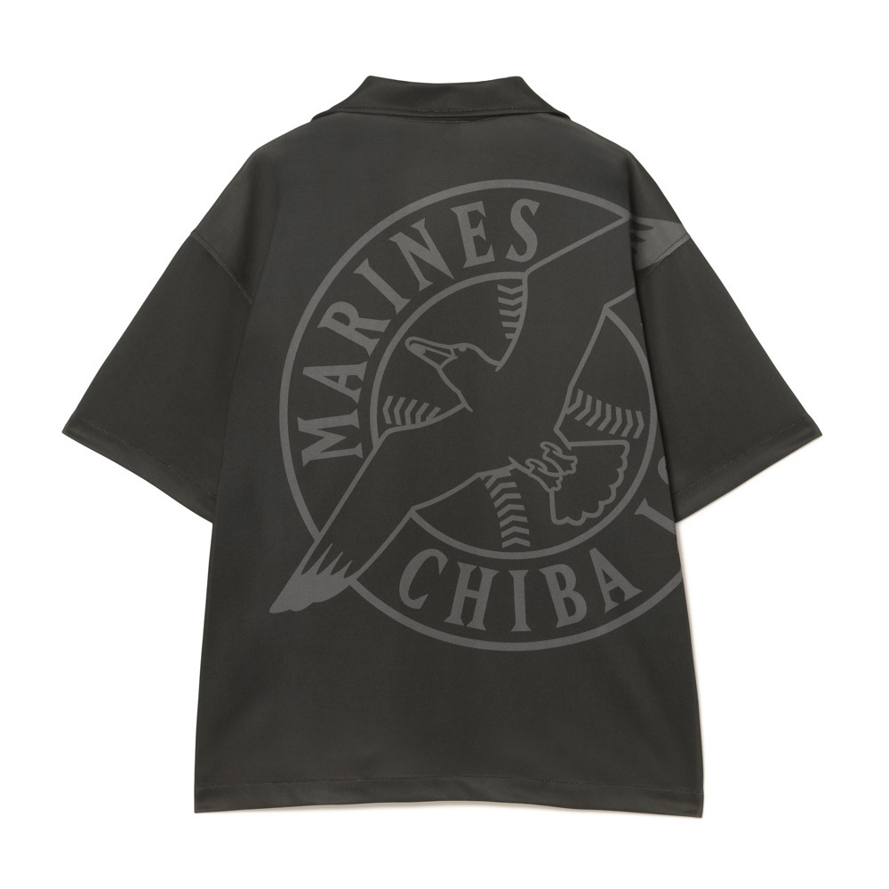 はシンボルロゴをバックプリントで大胆にレイアウトしたオープンカラーシャツ。