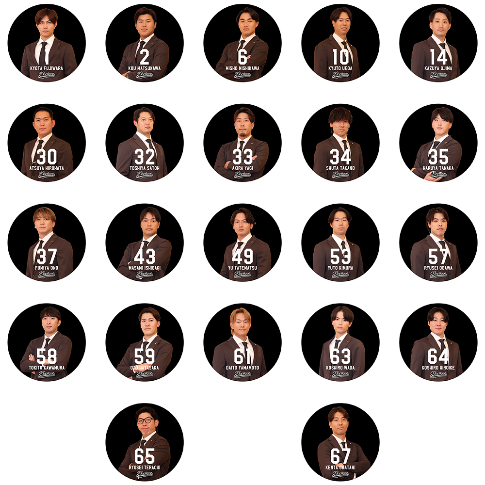 #1藤原、#2松川、#6西川、#10上田、#14小島、#30廣畑、#32佐藤、#33八木、#34高野脩、#35田中晴、#37小野、#43石垣、#49立松、#53木村、#57小川、#58河村、#59早坂、#61山本大、#63和田、#64廣池、#65寺地、#67茶谷