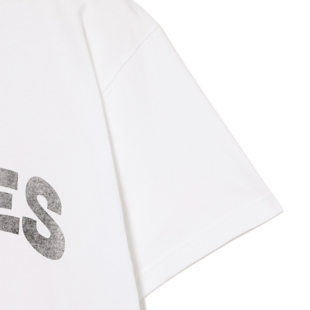 ポップなフォントのアーチロゴを、かすれ風プリントで表現することで、こなれたストリート感のある古着風デザインに仕上げました。