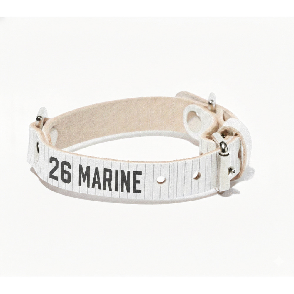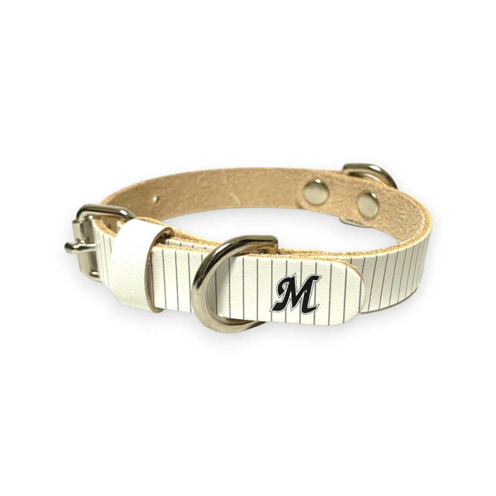 マリーンズデザインのオリジナルの名入れ+番号を入れることが可能なネーム・ナンバーカスタムの首輪です。