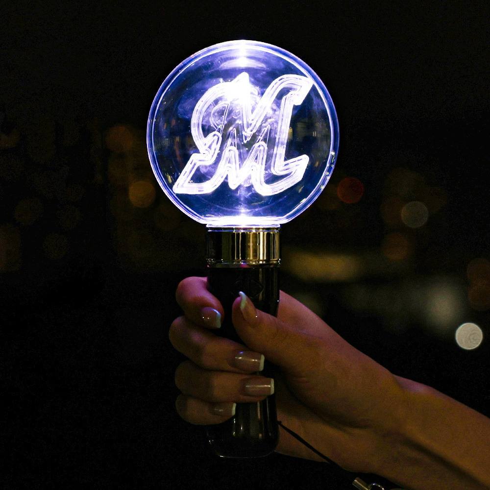 球場での演出に合わせて点灯する無線制御機能つきペンライトです。制御されていないときは14色に光る色を切り替えることができるペンライトです。