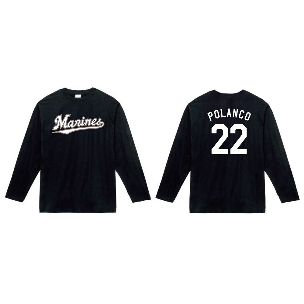 全選手展開 ネーム&ナンバー長袖Tシャツ(Marinesロゴ) ブラック