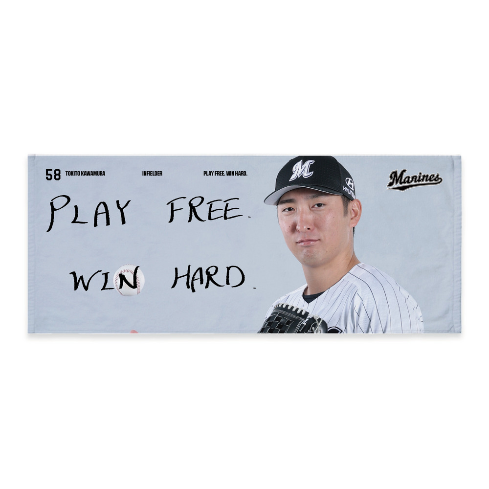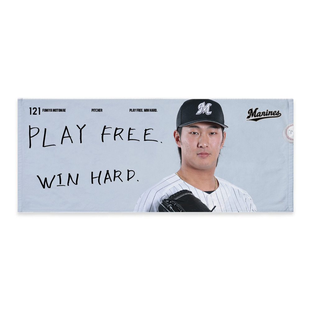 3月から8月の期間、毎月グループ分けをした選手で展開するマンスリープレーヤーグッズです。選手の出身地をエリアごとに分け、3月は「北海道・東北地方」の出身選手で展開します!デザインは、選手が直筆した今年のスローガン「PLAY FREE.WIN HARD.」をあしらいました。