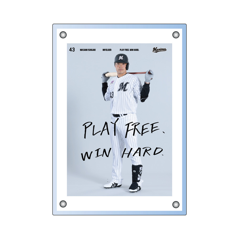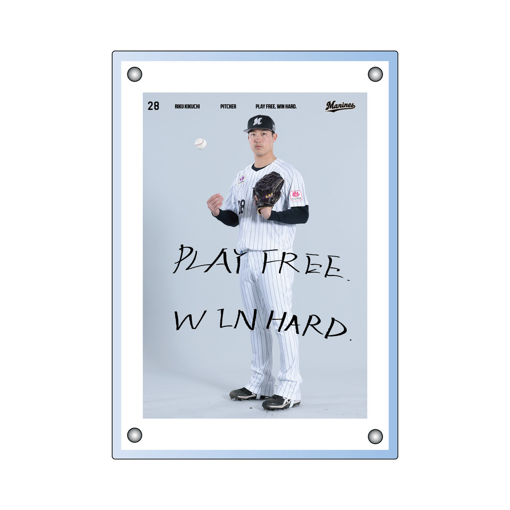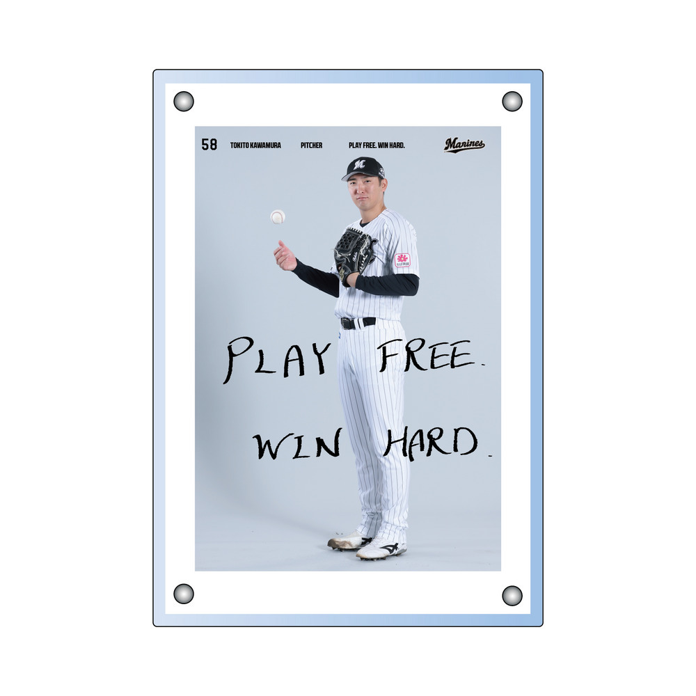 3月から8月の期間、毎月グループ分けをした選手で展開するマンスリープレーヤーグッズです。選手の出身地をエリアごとに分け、3月は「北海道・東北地方」の出身選手で展開します!デザインは、選手が直筆した今年のスローガン「PLAY FREE.WIN HARD.」をあしらいました。