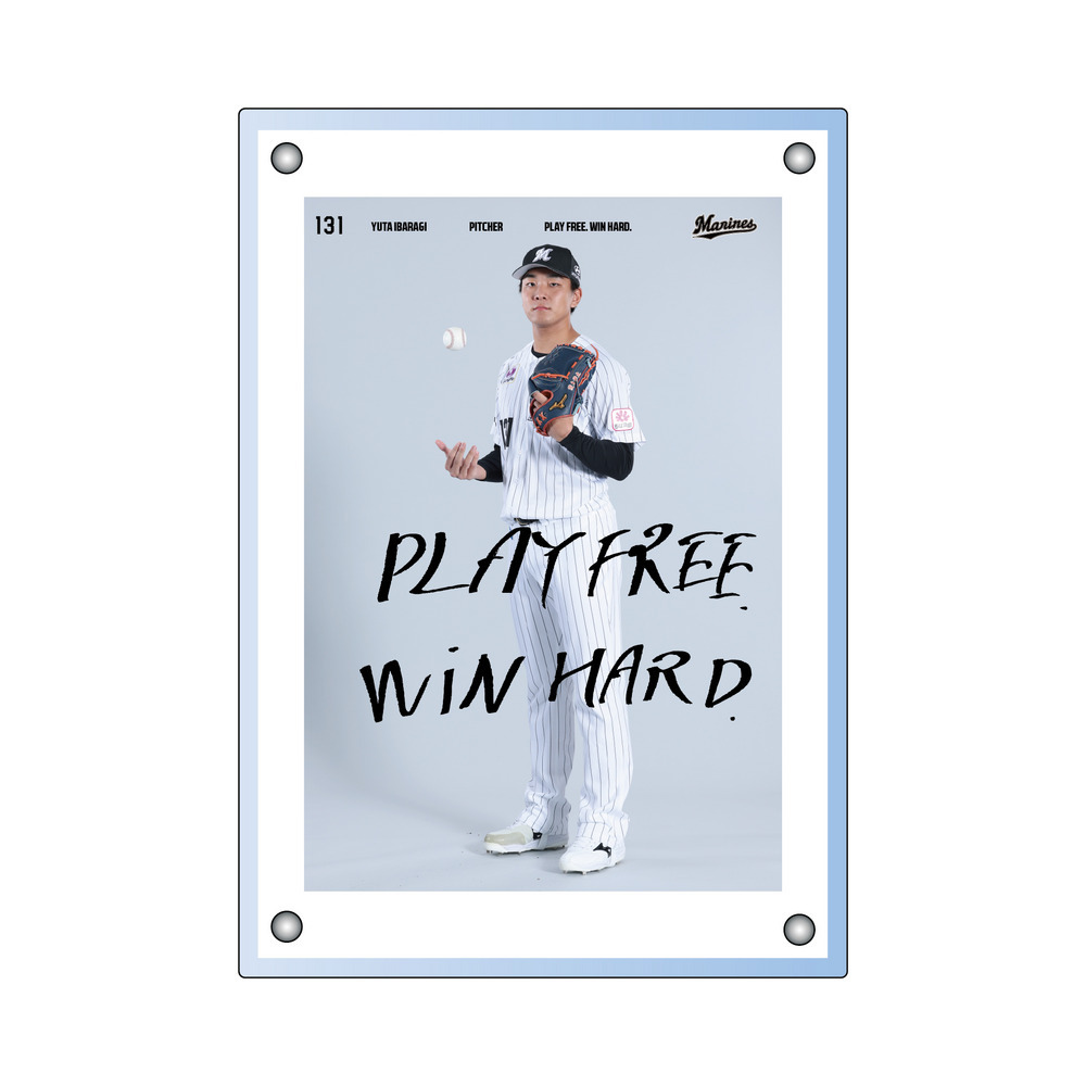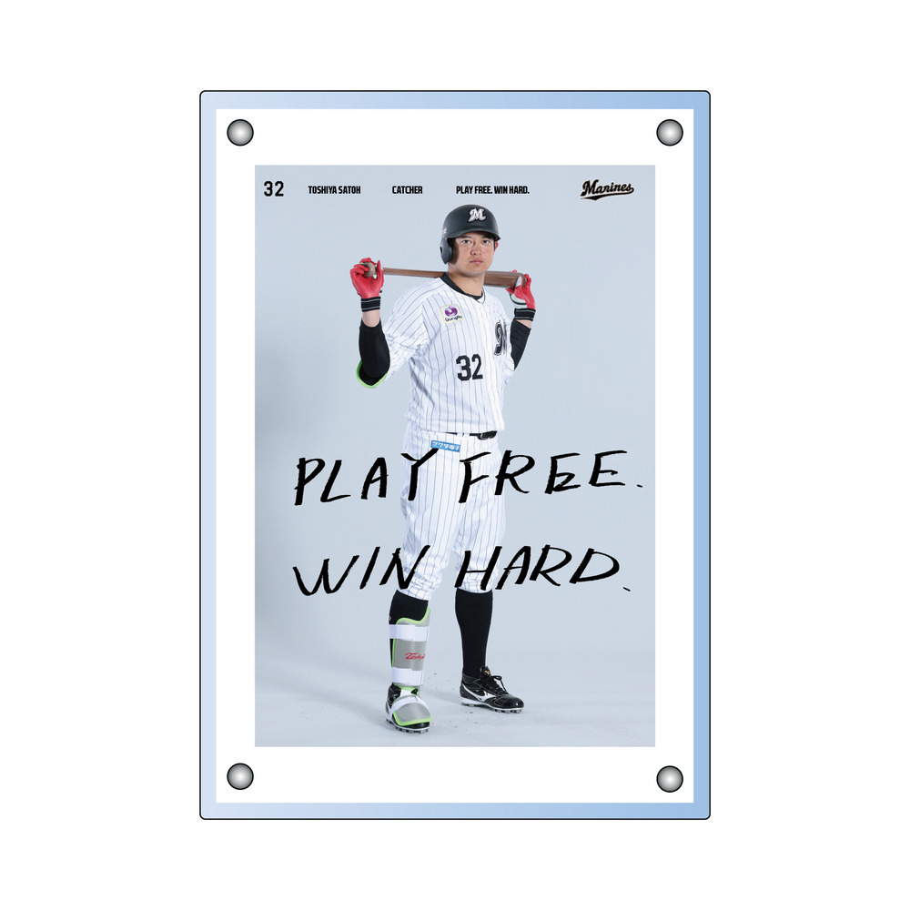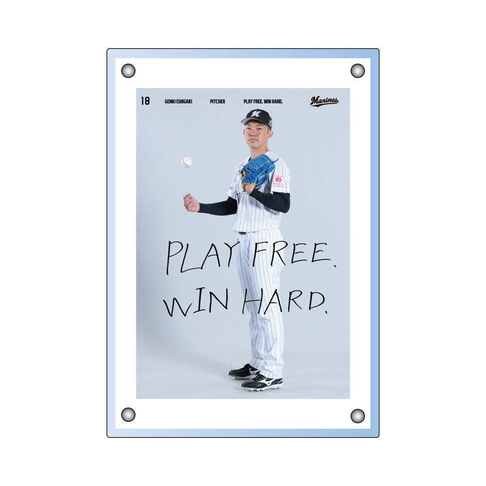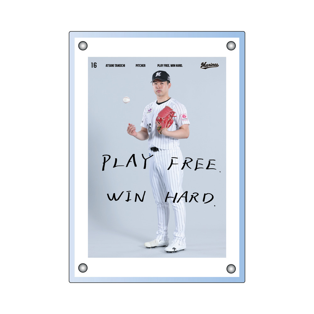 3月から8月の期間、毎月グループ分けをした選手で展開するマンスリープレーヤーグッズです。選手の出身地をエリアごとに分け、3月は「北海道・東北地方」の出身選手で展開します!デザインは、選手が直筆した今年のスローガン「PLAY FREE.WIN HARD.」をあしらいました。
