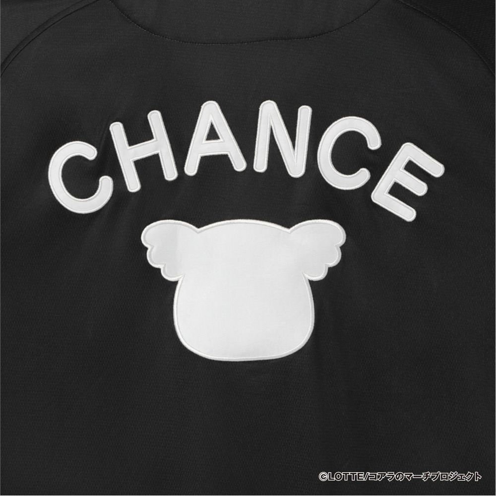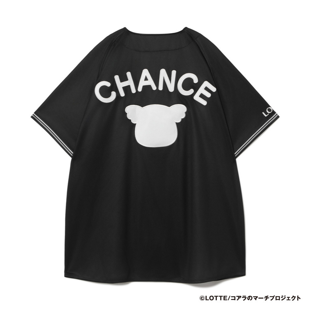 チャンスくん仕様のブラックカラーベースボールシャツが登場。カチューシャやファンキャップなどコーディネートしてチャンスくんになりきろう!