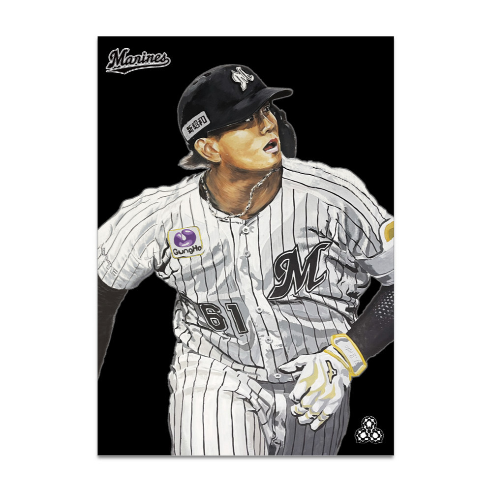 壁面アートは、昨年に引き続き壁画アーティストHori Hayato氏が担当。ZOZOマリンスタジアムのフロア3(1塁側内野席上段エリア)にある「プレイヤーズ・シート」のリニューアルを記念した特別デザインで、12選手のプレーシーンを描いています。