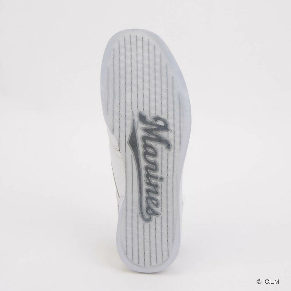 アウトソールにはクリアラバー越しに見える球団ロゴを採用し、歩くたびにさりげない存在感を演出。