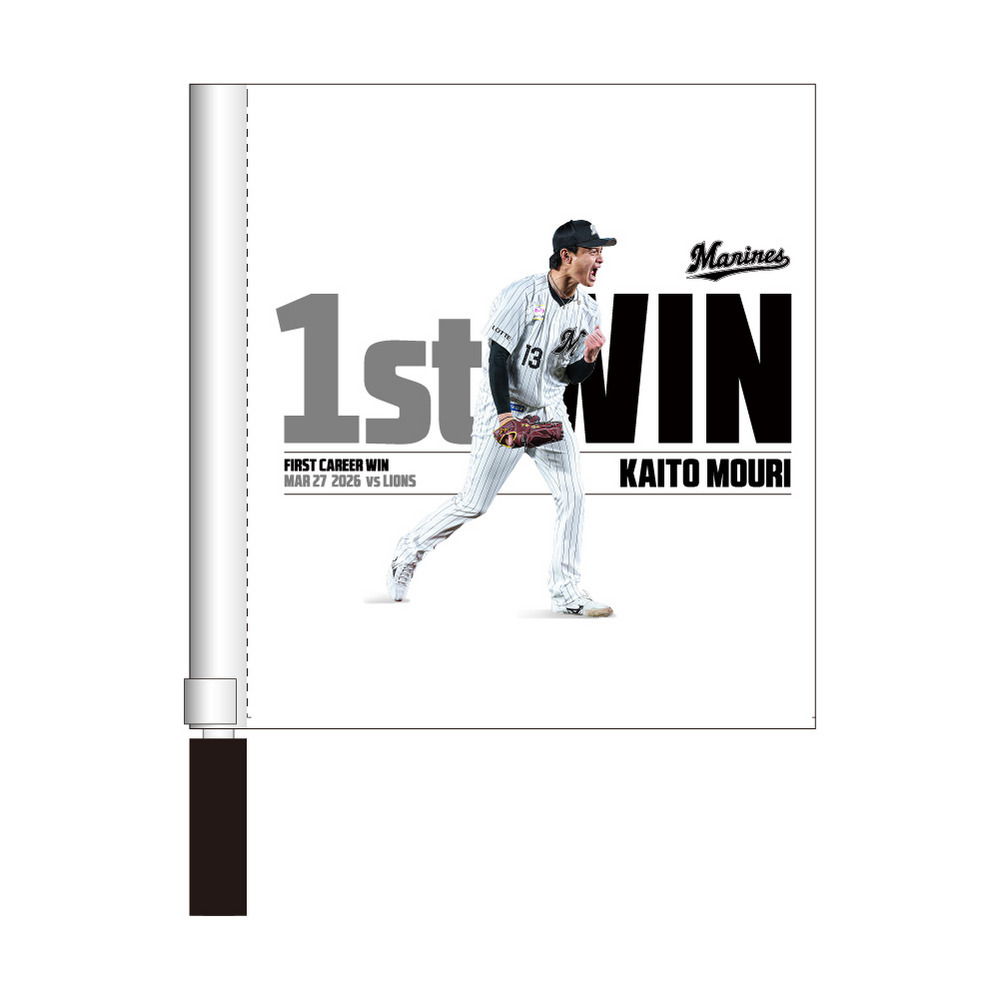 3月27日(金)のライオンズ戦にて、球団史上76年ぶり新人開幕投手を務め、プロ入り初勝利を記録した毛利海大投手の初勝利記念グッズです。