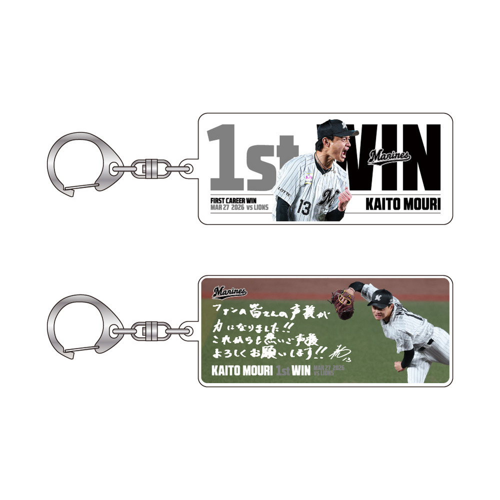 3月27日(金)のライオンズ戦にて、球団史上76年ぶり新人開幕投手を務め、プロ入り初勝利を記録した毛利海大投手の初勝利記念グッズです。