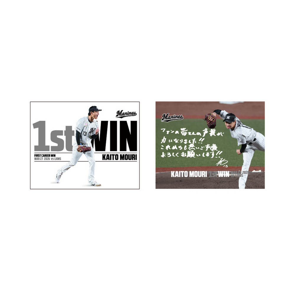 3月27日(金)のライオンズ戦にて、球団史上76年ぶり新人開幕投手を務め、プロ入り初勝利を記録した毛利海大投手の初勝利記念グッズです。