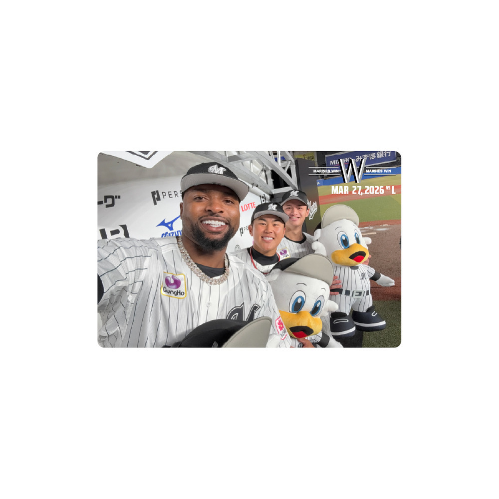 ヒーローに輝いた選手を商品化したベストシーングッズ。3/27のライオンズ戦でヒーローとなった松川選手、毛利投手、ポランコ選手の集合ビジュアルデザインのグッズです。