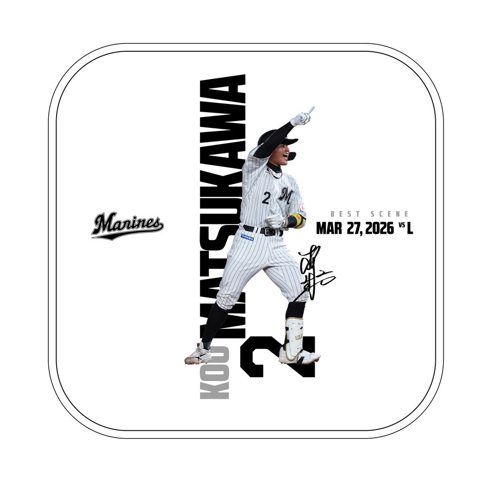 ヒーローに輝いた選手を商品化したベストシーングッズ。今回は3/27のライオンズ戦でヒーローとなった松川虎生選手が登場!
