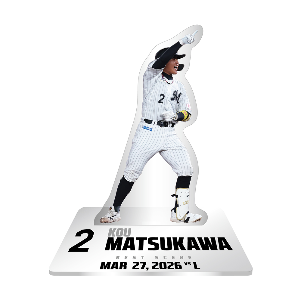 ヒーローに輝いた選手を商品化したベストシーングッズ。今回は3/27のライオンズ戦でヒーローとなった松川虎生選手が登場!