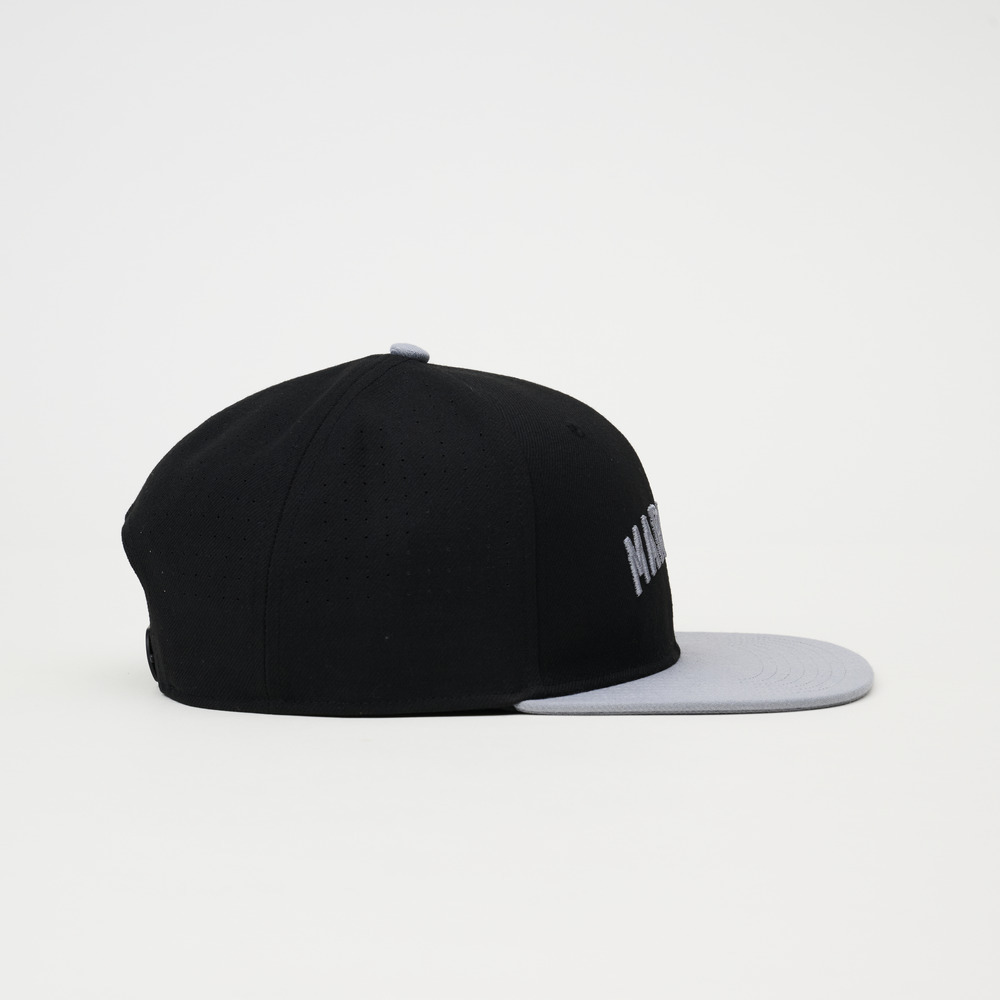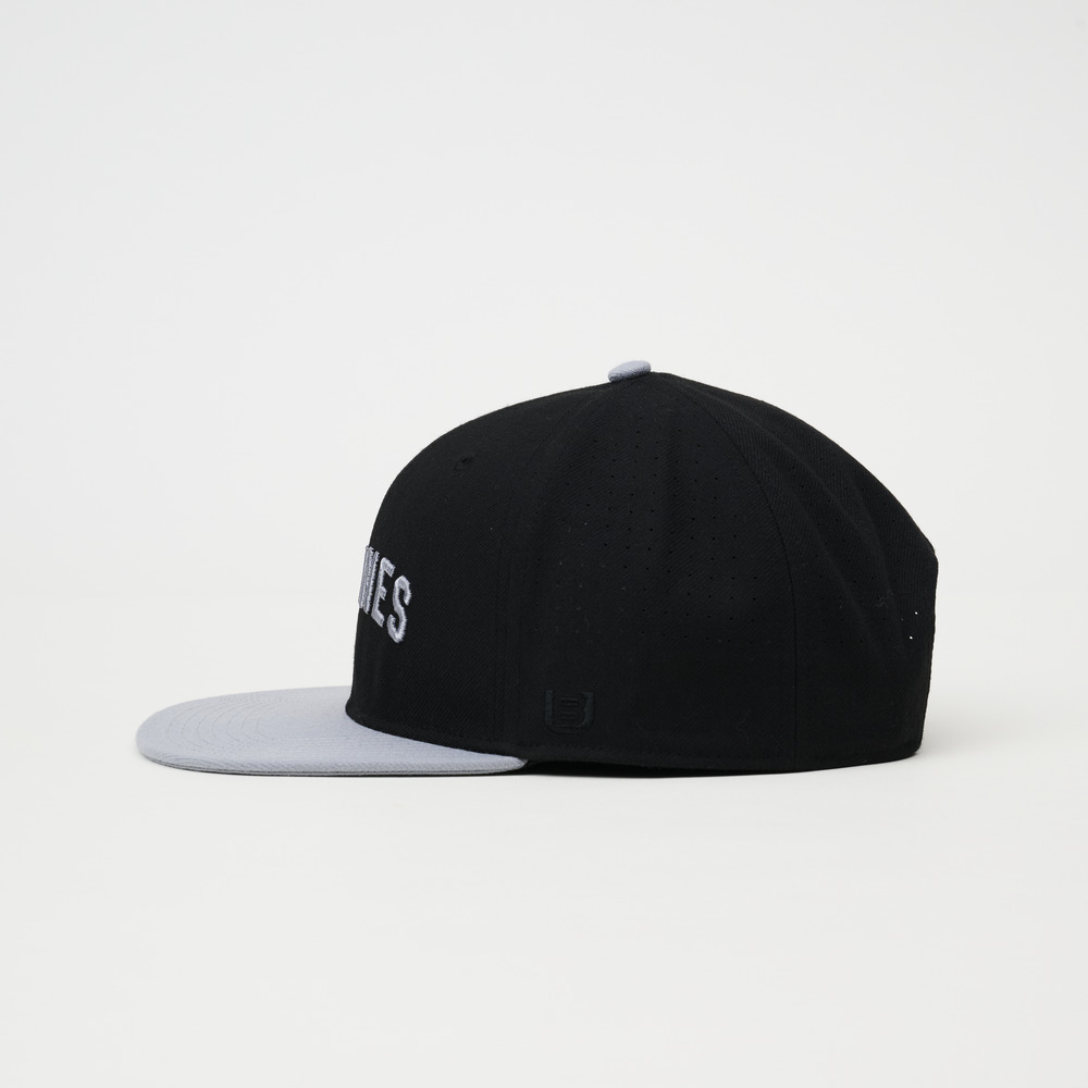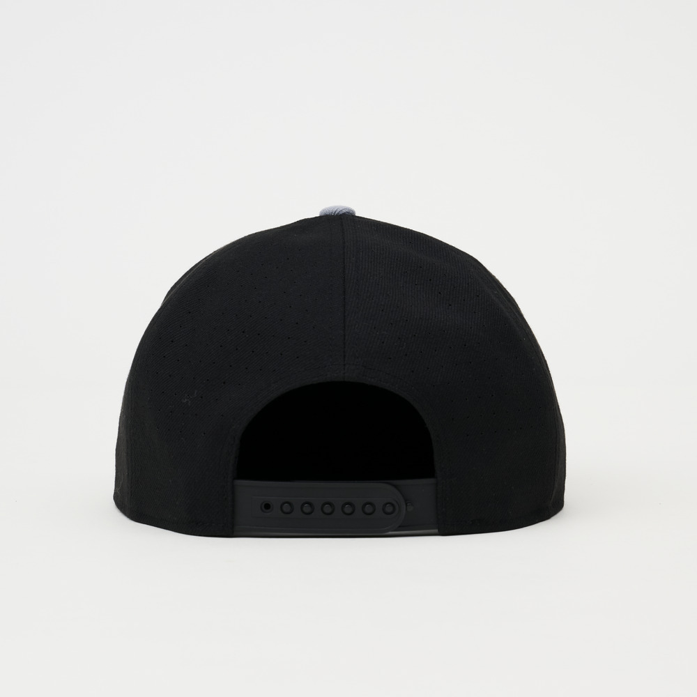 フラットバイザーを基調に立体的に構築されたフォルムのモデル。シャープな輪郭と安定感のあるクラウン設計に、背面にはレーザーカットによる通気構造を採用。