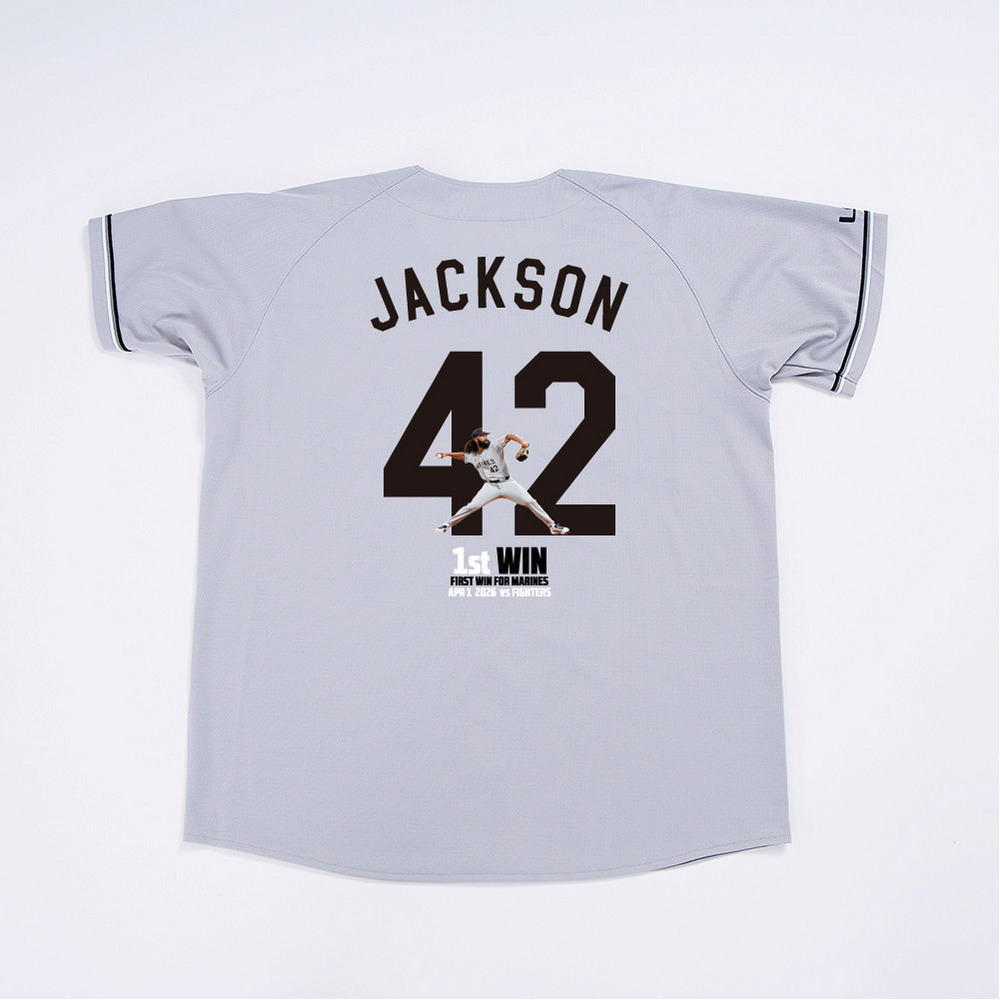 4月1日(水)のファイターズ戦にて、マリーンズ移籍後初勝利を記録したアンドレ・ジャクソン投手の移籍後初勝利記念グッズです。