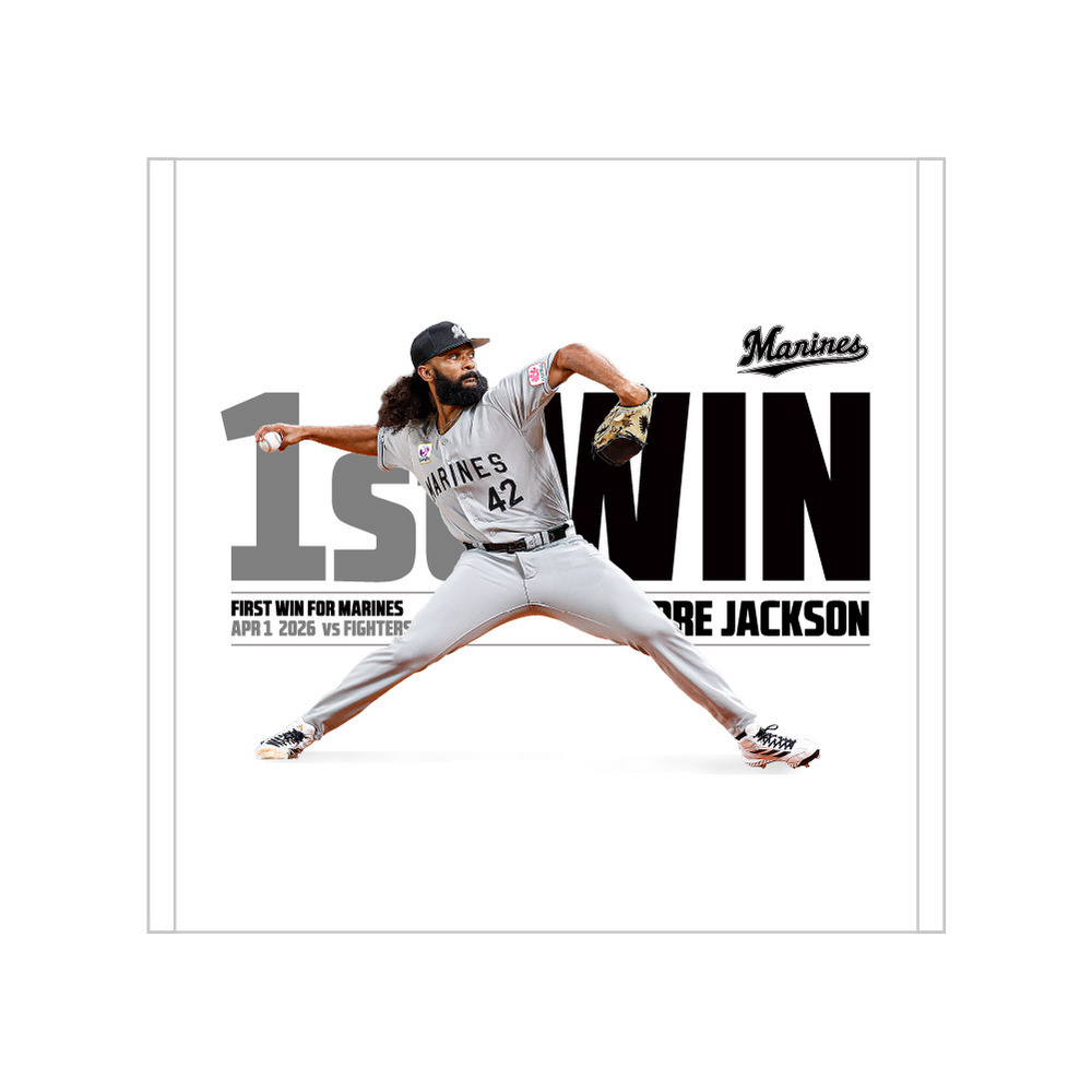 4月1日(水)のファイターズ戦にて、マリーンズ移籍後初勝利を記録したアンドレ・ジャクソン投手の移籍後初勝利記念グッズです。