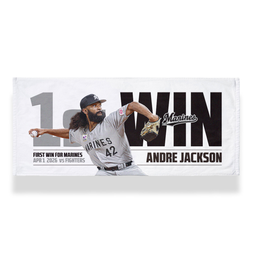 4月1日(水)のファイターズ戦にて、マリーンズ移籍後初勝利を記録したアンドレ・ジャクソン投手の移籍後初勝利記念グッズです。