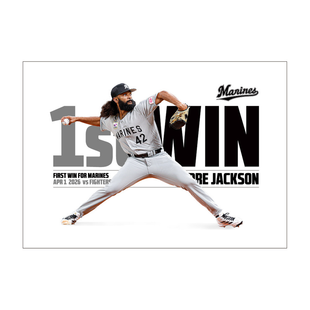 4月1日(水)のファイターズ戦にて、マリーンズ移籍後初勝利を記録したアンドレ・ジャクソン投手の移籍後初勝利記念グッズです。