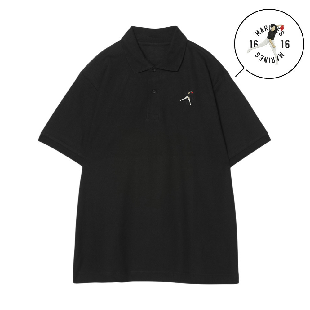 18選手展開 ワンポイント刺繍ポロシャツ ブラック(VISITOR)