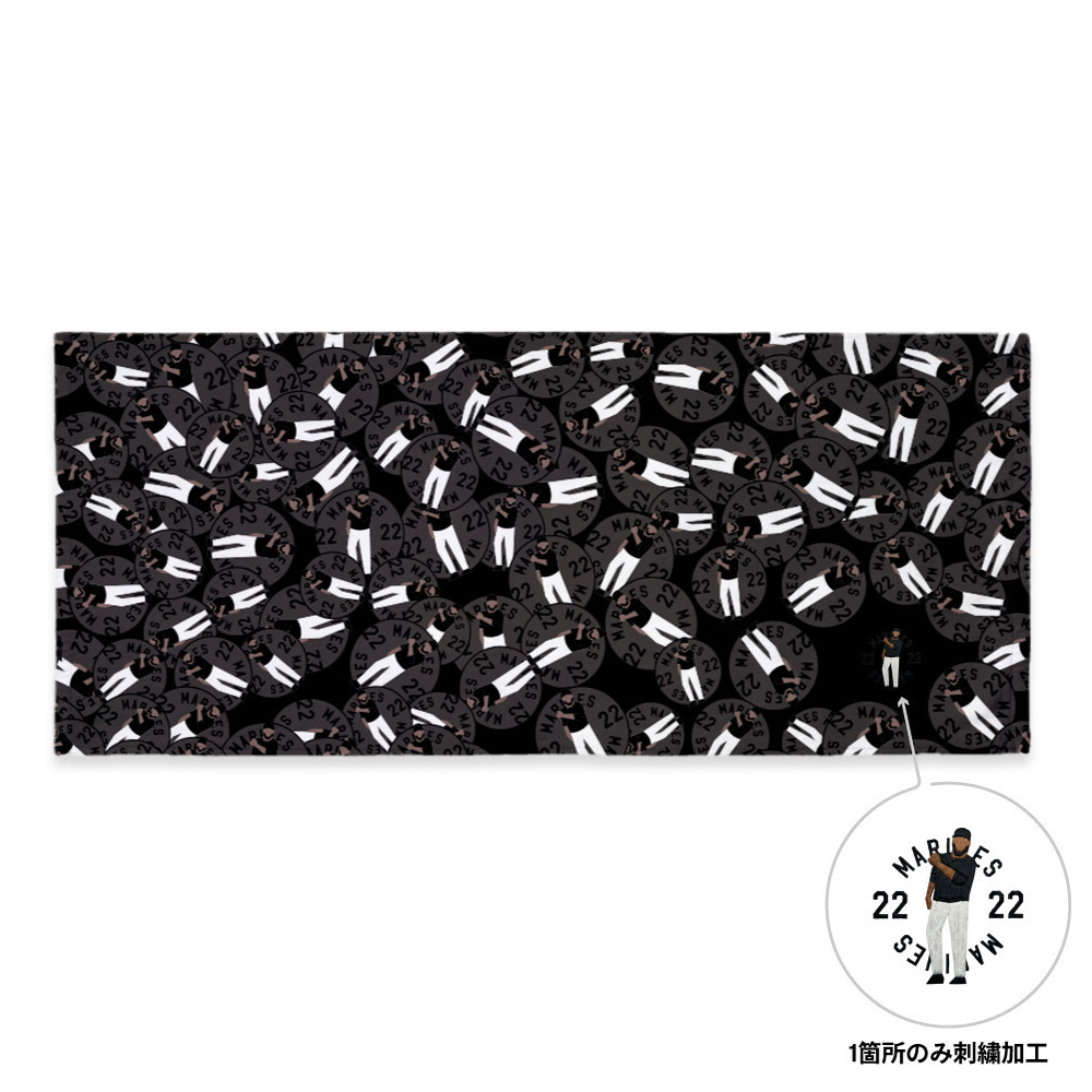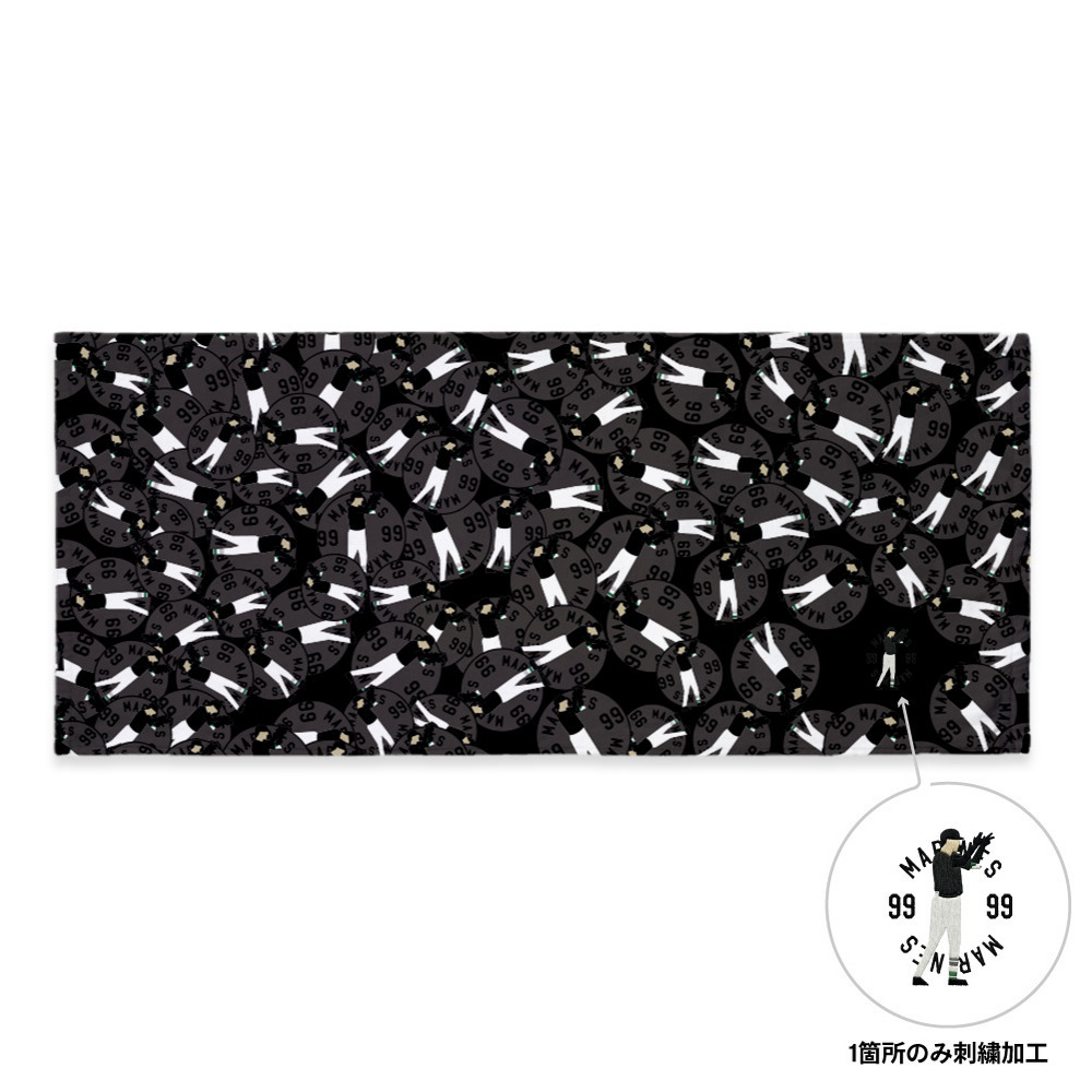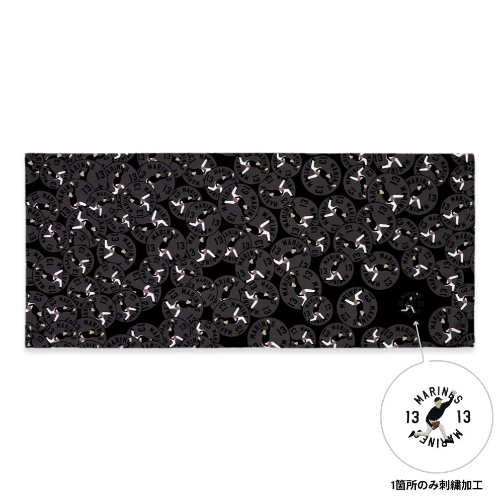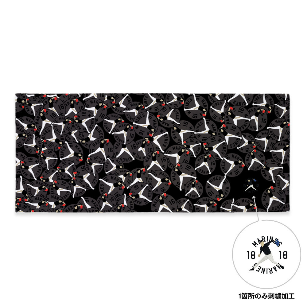 投球フォームやバッティングフォームなど、ファンなら一目で「あの選手だ!」とわかる印象的なポーズを刺繍で表現したグッズです。右下にワンポイント刺繍をあしらい、その他のデザインはインクジェットプリントを採用しました。