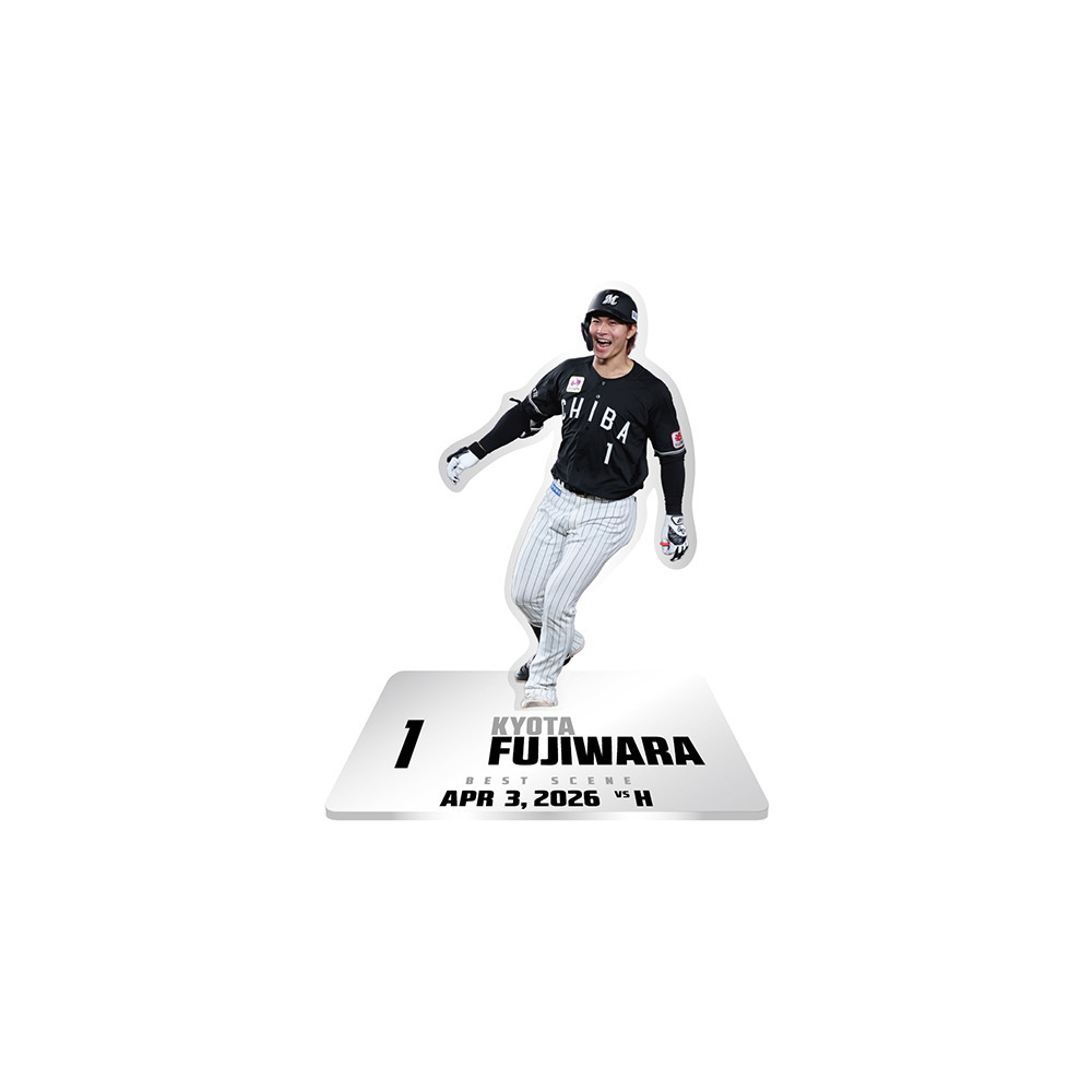 ヒーローに輝いた選手を商品化したベストシーングッズ。今回は4/3のホークス戦でヒーローとなった藤原恭大選手が登場!