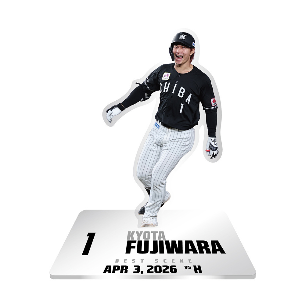 ヒーローに輝いた選手を商品化したベストシーングッズ。今回は4/3のホークス戦でヒーローとなった藤原恭大選手が登場!