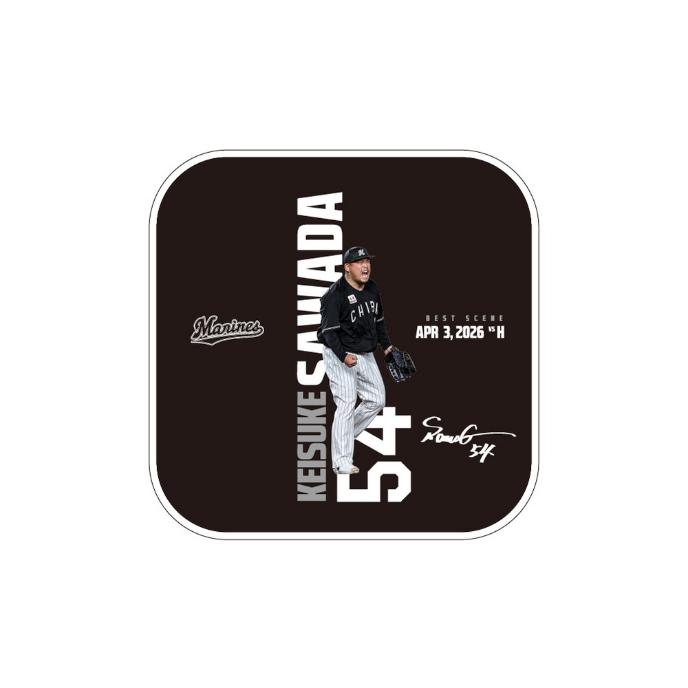 ヒーローに輝いた選手を商品化したベストシーングッズ。今回は4/3のホークス戦でヒーローとなった澤田圭佑投手が登場!