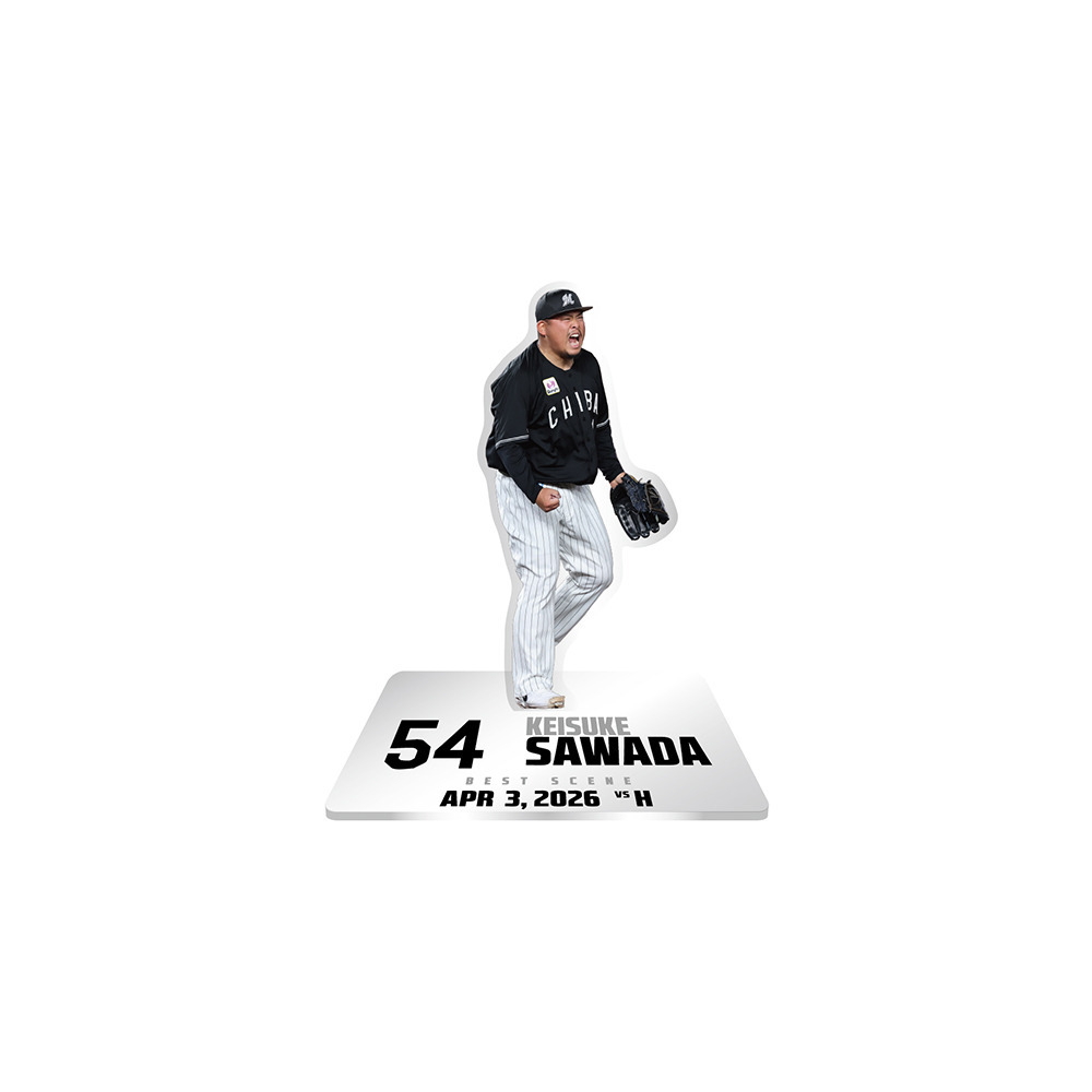 ヒーローに輝いた選手を商品化したベストシーングッズ。今回は4/3のホークス戦でヒーローとなった澤田圭佑投手が登場!