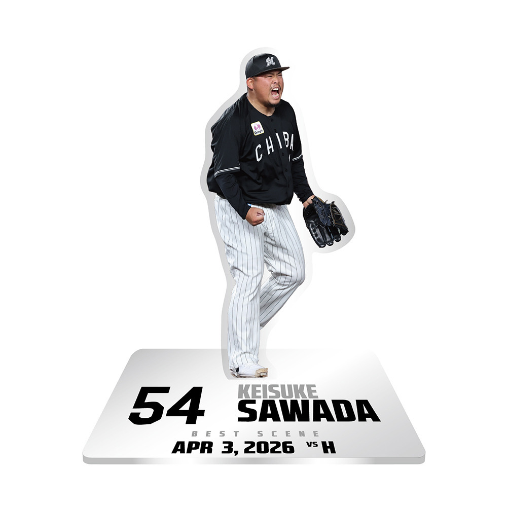 ヒーローに輝いた選手を商品化したベストシーングッズ。今回は4/3のホークス戦でヒーローとなった澤田圭佑投手が登場!