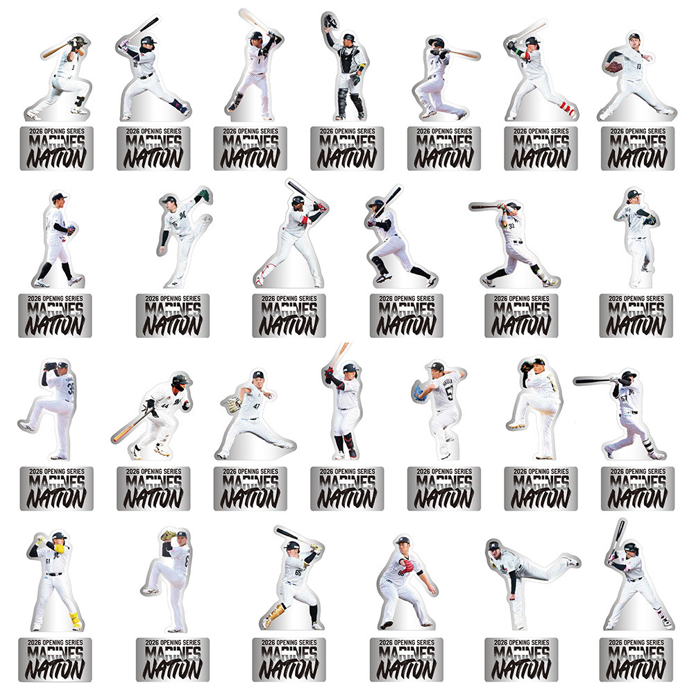 1回550円(税込)のオンラインくじです。4月のオンラインくじは、ホームでの開幕3連戦MARINES NATIONに出場した26選手の選手画像を使用したデザインになっています。最後の一回を回していただいた方には、LAST MARINES賞として、今回限定デザインのスクエアクッションが手に入ります!