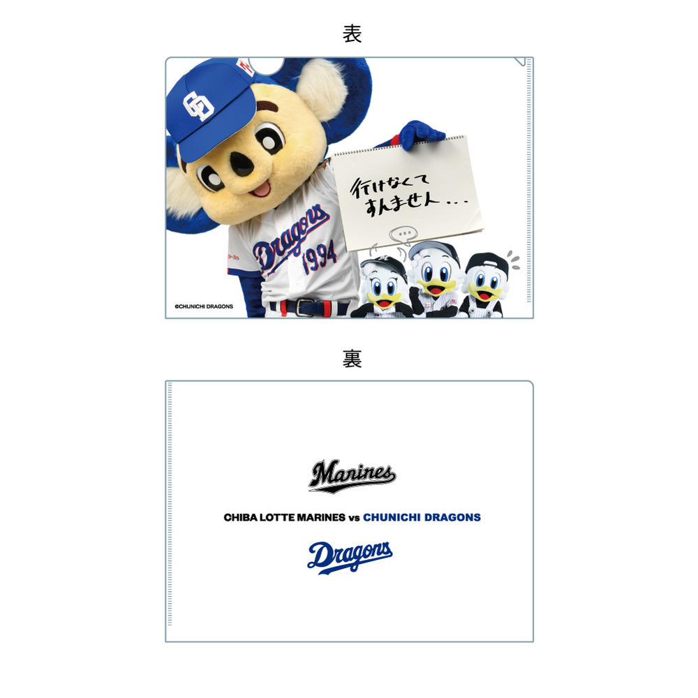 マリーンズ×ドラゴンズ 実写マスコットコラボ ドアラメッセージクリアファイル