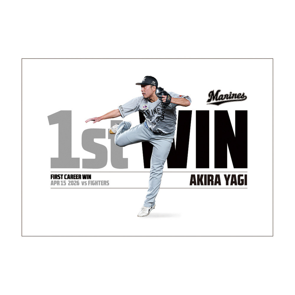 4月15日(水)のファイターズ戦にて、プロ入り初勝利を記録した八木彬投手の初勝利記念グッズです。
