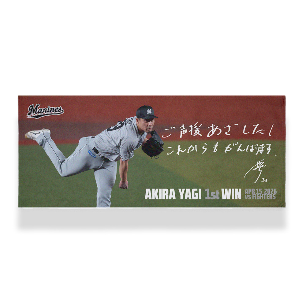 4月15日(水)のファイターズ戦にて、プロ入り初勝利を記録した八木彬投手の初勝利記念グッズです。