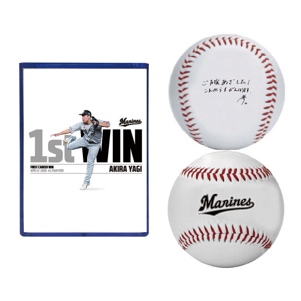 4月15日(水)のファイターズ戦にて、プロ入り初勝利を記録した八木彬投手の初勝利記念グッズです。