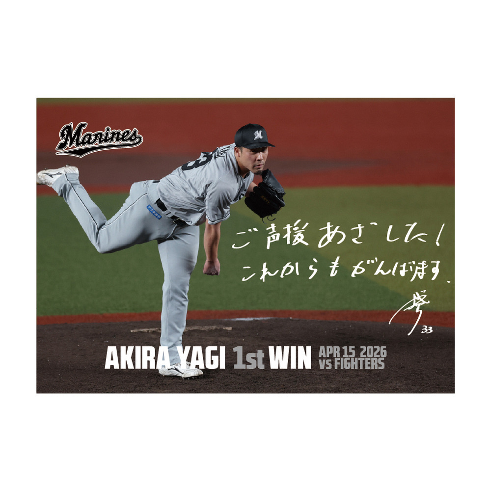 4月15日(水)のファイターズ戦にて、プロ入り初勝利を記録した八木彬投手の初勝利記念グッズです。